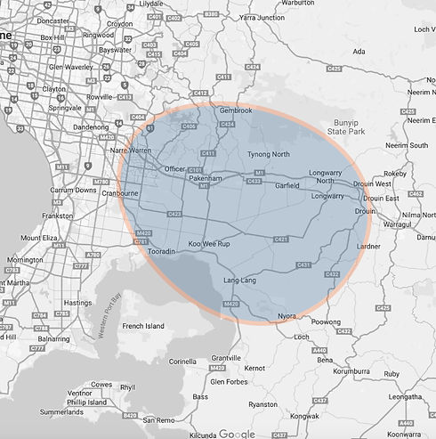 Clinic based services are located in Pakenham 3810 in our newly renovated clinic. For mobile services, we are able to travel 30 minutes from Koo Wee Rup, Victoria 3981.